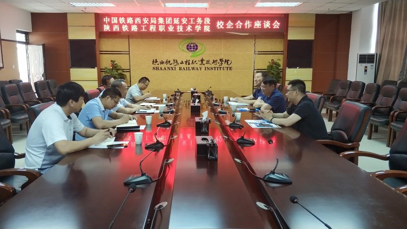 6月12日上午,集团成员中国铁路西安局集团延安工务段段长彭有辉、党委书记熊垚光、团委书记徐小涛一行3人到陕西铁路工程职业技术学院考察调研,陕铁院党委副书记车绪武、铁道工程系主任刘明学、系党总支书记曹喜龙、校企合作处副处长黄新静、铁道工程系系办主任庞旭卿等人在学院高新校区南三楼会议室接待了来宾并进行座谈交流。