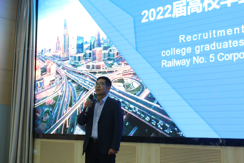 随后,中铁一局集团第五工程有限公司人力资源部副部长张天良、宝鸡精密测量有限公司书记白芝勇(全国劳模)等领导来到博爱厅开展了2021年校园宣讲会。
